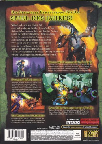 World of Warcraft: The Burning Crusade is the exciting new expansion to Blizzard's award-winning massively multiplayer online role-playing game. It expands the game by tremendous bounds, adding new races, lands, Battlegrounds, professions and items, and more. Here is just a partial list of what you can expect from the World of Warcraft expansion: