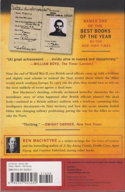 Ben Macintyre’s Agent Zigzag was hailed as “rollicking, spellbinding” (New York Times), “wildly improbable but entirely true” (Entertainment Weekly), and, quite simply, “the best book ever written” (Boston Globe). In his new book, Operation Mincemeat, he tells an extraordinary story that will delight his legions of fans.In 1943, from a windowless basement office in London, two brilliant intelligence officers conceived a plan that was both simple and complicated— Operation Mincemeat. The purpose? To deceive the Nazis into thinking that Allied forces were planning to attack southern Europe by way of Greece or Sardinia, rather than Sicily, as the Nazis had assumed, and the Allies ultimately chose. Charles Cholmondeley of MI5 and the British naval intelligence officer Ewen Montagu could not have been more different. Cholmondeley was a dreamer seeking adventure. Montagu was an aristocratic, detail-oriented barrister. But together they were the perfect team and created an ingenious plan: Get a corpse, equip it with secret (but false and misleading) papers concerning the invasion, then drop it off the coast of Spain where German spies would, they hoped, take the bait. The idea was approved by British intelligence officials, including Ian Fleming (creator of James Bond). Winston Churchill believed it might ring true to the Axis and help bring victory to the Allies.Filled with spies, double agents, rogues, fearless heroes, and one very important corpse, the story of Operation Mincemeat reads like an international thriller.Unveiling never-before-released material, Ben Macintyre brings the reader right into the minds of intelligence officers, their moles and spies, and the German Abwehr agents who suffered the “twin frailties of wishfulness and yesmanship.” He weaves together the eccentric personalities of Cholmondeley and Montagu and their near-impossible feats into a riveting adventure that not only saved thousands of lives but paved the way for a pivotal battle in Sicily and, ultimately, Allied success in the war.From the Hardcover edition.