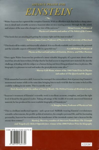 By the author of the acclaimed bestsellers Benjamin Franklin and Steve Jobs, this is the definitive biography of Albert Einstein. How did his mind work? What made him a genius? Isaacson’s biography shows how his scientific imagination sprang from the rebellious nature of his personality. His fascinating story is a testament to the connection between creativity and freedom. Based on newly released personal letters of Einstein, this book explores how an imaginative, impertinent patent clerk—a struggling father in a difficult marriage who couldn’t get a teaching job or a doctorate—became the mind reader of the creator of the cosmos, the locksmith of the mysteries of the atom, and the universe. His success came from questioning conventional wisdom and marveling at mysteries that struck others as mundane. This led him to embrace a morality and politics based on respect for free minds, free spirits, and free individuals. These traits are just as vital for this new century of globalization, in which our success will depend on our creativity, as they were for the beginning of the last century, when Einstein helped usher in the modern age.