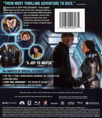 The fourth season of the American television series Star Trek: Discovery follows the crew of the USS Discovery, more than 900 years after the events of Star Trek: The Original Series, as they help rebuild the United Federation of Planets following a cataclysmic event. They soon face an unprecedented space anomaly that causes destruction across the galaxy.