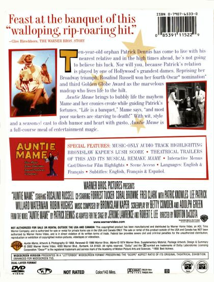 Ten-year-old orphan Patrick Dennis has come to live with his nearest relative and in the high times ahead, he's not going to believe his luck. Nor will you, because Patrick's relation is played by one of Hollywood's grandest dames. Reprising her Broadway triumph, Rosalind Russell won her fourth Oscar nomination and third Golden Globe Award as the marvelous madcap who lives life to the hilt. Auntie Mame brings to bubbly life the mayhem Mame and her cronies create while guiding Patrick's fortunes. "Life is a banquet," Mame says, "and most poor suckers are starving to death!" With wit, style and a seasoned cast to dish humor and heart with gusto, Auntie Mame is a full-course meal of entertainment magic.