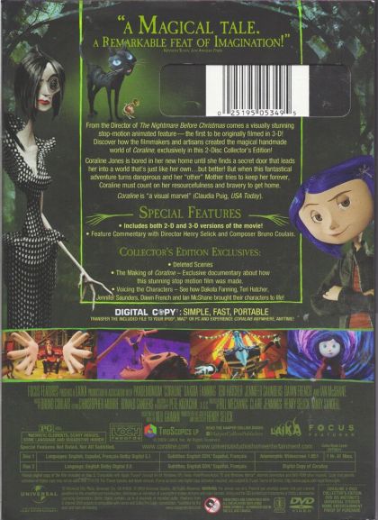 Wandering her rambling old house in her boring new town, 11-year-old Coraline discovers a hidden door to a strangely idealized version of her life. In order to stay in the fantasy, she must make a frighteningly real sacrifice.