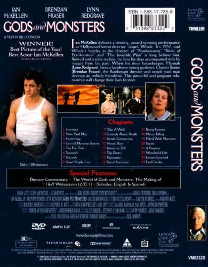It's 1957, and James Whale's heyday as the director of "Frankenstein," "Bride of Frankenstein" and "The Invisible Man" is long behind him. Retired and a semi-recluse, he lives his days accompanied only by images from his past. When his dour housekeeper, Hannah, hires a handsome young gardener, the flamboyant director and simple yard man develop an unlikely friendship, which will change them forever.