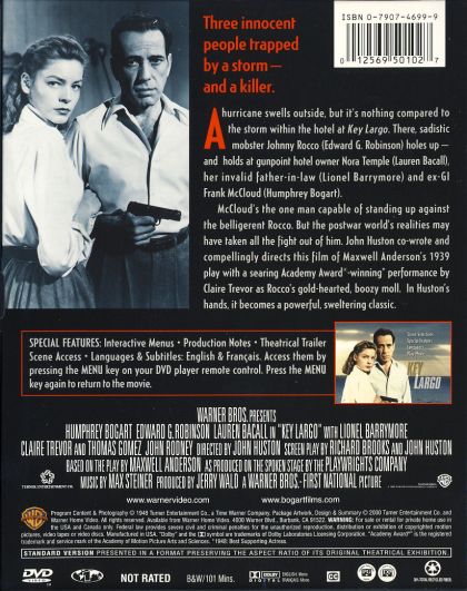A hurricane swells outside, but it's nothing compared to the storm within the hotel at Key Largo. There, sadistic mobster Johnny Rocco holes up - and holds at gunpoint hotel owner James Temple, his widowed daughter-in-law Nora, and ex-GI Frank McCloud.