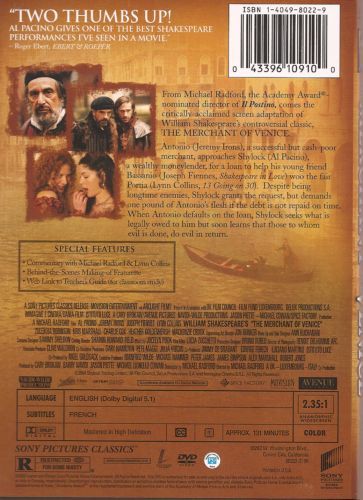 Venice, 1596. Bassanio begs his friend Antonio, a prosperous merchant, to lend him a large sum of money so that he can woo Portia, a very wealthy heiress; but Antonio has invested his fortune abroad, so they turn to Shylock, a Jewish moneylender, and ask him for a loan.