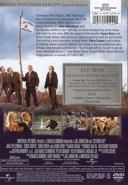 Homer Hickam is a kid with only one future in sight, to work in the local coal mine like his father. However, in October 1957 everything changes when the first artificial satellite, Sputnik, goes into orbit. When Homer sees the Soviet satellite streak overhead, he becomes inspired to learn how to build rockets. With the help of his friends, and the local nerd, Homer sets to do just that by trial and a lot of error. Unfortunately, most of the town, and especially Homer's father, thinks that they are wasting their time. Only one teacher understands their efforts and lets them know that they could become contenders in the national science fair with college scholarships being the prize. Now the gang must learn to perfect their craft and overcome the many problems facing them as they shoot for the stars.