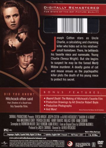In sleepy Santa Rosa, restless young Charlie’s world brightens when her sophisticated Uncle Charlie arrives for a long visit. But as his behavior grows increasingly strange, she begins to suspect that her beloved uncle may be hiding a terrible secret—and that danger has quietly entered her home.