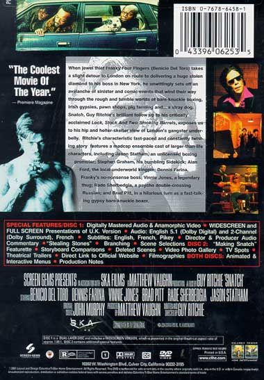 The second film from British director Guy Ritchie. Snatch tells an obscure story similar to his first fast-paced crazy character-colliding filled film “Lock, Stock and Two Smoking Barrels.” There are two overlapping stories here – one is the search for a stolen diamond, and the other about a boxing promoter who’s having trouble with a psychotic gangster.