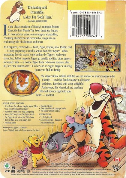 Winnie the Pooh, Piglet, Owl, Kanga, Roo, and Rabbit are preparing a suitable winter home for Eeyore, the perennially dejected donkey, but Tigger's continual bouncing interrupts their efforts. Rabbit suggests that Tigger go find others of his kind to bounce with, but Tigger thinks "the most wonderful thing about tiggers is" he's "the only one!" Just in case though, the joyously jouncy feline sets out to see if he can find relatives.