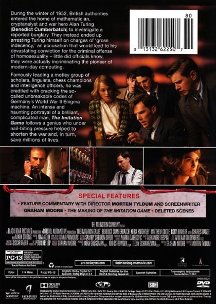 Based on the real life story of legendary cryptanalyst Alan Turing, the film portrays the nail-biting race against time by Turing and his brilliant team of code-breakers at Britain's top-secret Government Code and Cypher School at Bletchley Park, during the darkest days of World War II.
