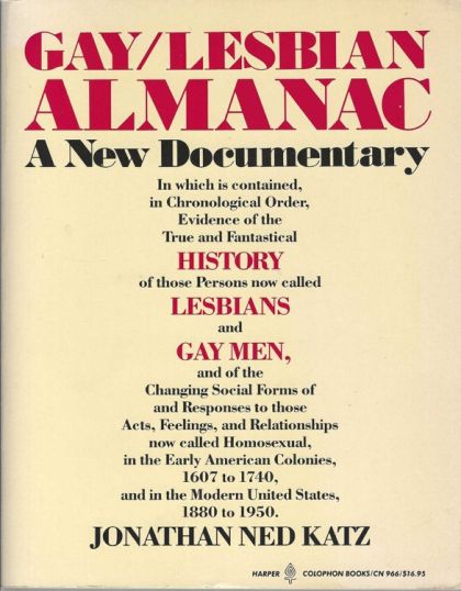 Gay/lesbian almanac : a new documentary in which is contained, in chronological order, evidence of the true and fantastical history of those persons now called lesbians and gay men, and of the changing social forms of and responses to those acts, feelings, and relationships now called homosexual, in the early American colonies, 1607 to 1740, and in modern United States, 1880 to 1950