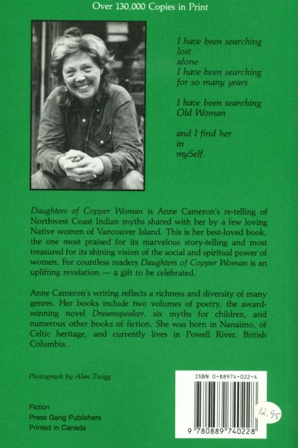 Since its first publication in 1981, "Daughters of Copper Woman" has become an underground classic, selling over 200,000 copies. Now comes a new edition that includes many pieces cut from the original as well as fresh material added by the author. Here finally, after twenty-two years of gathering dust, is the complete version of the groundbreaking bestseller. In this, her best-loved work, Anne Cameron has created a timeless retelling of northwest coast Native myths that together create a sublime image of the social and spiritual power of woman. Cameron weaves together the lives of legendary and imaginary characters, creating a work of fiction with an intensity of style matched by the power of its subject.