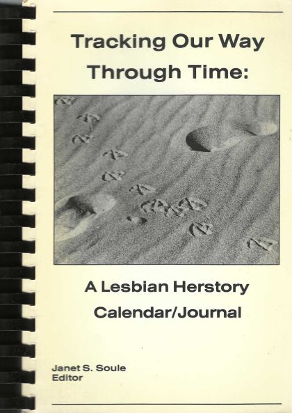 Perpetual calendar/daily journal with events of historical lesbian interest accompanied by photos and art leaving enough space for the owner to write the day's events. Lengthy list of references at end cites sources from which quotes and notes were taken.