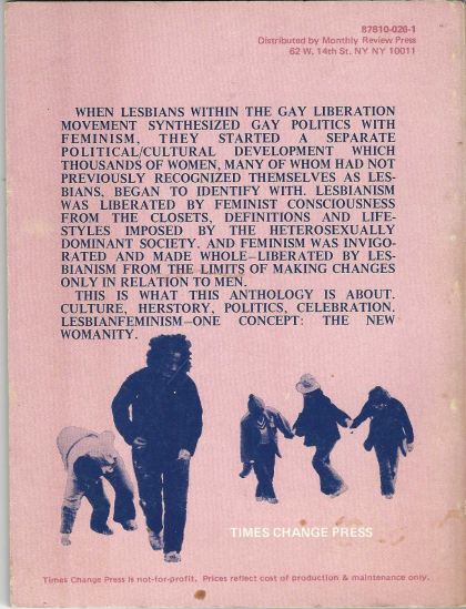 The Parable Of The Mothers And Daughters / Florence Rush -- Lesbianism And Feminism / Ti-grace Atkinson -- The Sexual Abuse Of Children: A Feminist Point Of View / Florence Rush -- The New Misandry / Joanna Russ -- Emily Dickinson Feminist / Rebecca Patterson -- High School Crack-up / Esther Newton -- The Vision And Persecution Of Aurora Phelps / Arlene Kisner, Lois Hart, Ellen Shumsky -- Return Of The Amazon Mother / Jill Johnston -- The More Profound Nationality Of Their Lesbianism: Lesbian Society In Paris In The 1920's / Bertha Harris -- The Comingest Womanifesto (followed By Resolution Of Lesbians International) / Jill Johnston. Edited By Phyllis Birkby ... [et Al.].