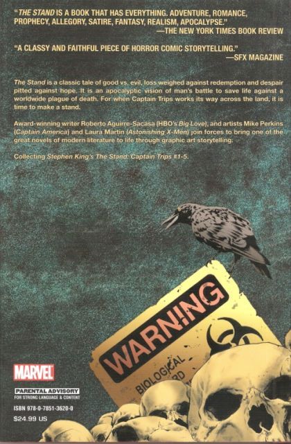 It all begins here: the epic apocalyptic battle between good and evil. On a secret army base in the Californian desert, something has gone horribly, terribly wrong. Something will send Charlie Campion, his wife and daughter fleeing in the middle of the night. Unfortunately for the Campion family, and the rest of America, they are unaware that all three of them are carrying a deadly cargo: a virus that will spread from person to person like wildfire, triggering a massive wave of disease and death, prefacing humanity's last stand. Collects The Stand: Captain Trips #1-5.