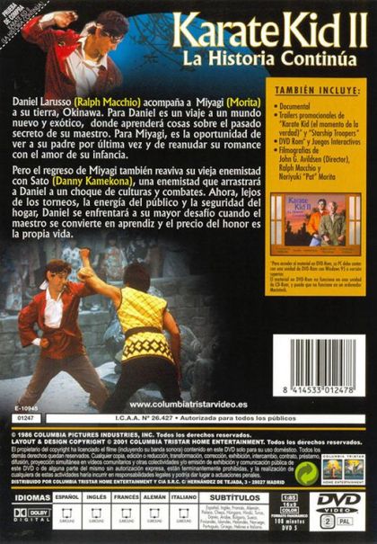 En esta película la técnica estrella queda resumida en la frase "la mejor forma de esquivar un golpe es no estar allí". La trama principal de la película transcurre en Okinawa, la tierra del señor Miyagi. Daniel, que ha roto con su novia le acompaña durante sus vacaciones de verano.