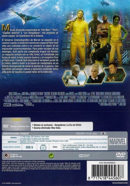 El temerario aventurero Peter Quill es objeto de un implacable cazarrecompensas después de robar una misteriosa esfera codiciada por Ronan, un poderoso villano cuya ambición amenaza todo el universo. Para poder escapar del incansable Ronan, Quill se ve obligado a pactar una complicada tregua con un cuarteto de disparatados inadaptados: Rocket, un mapache armado con un rifle, Groot, un humanoide con forma de árbol, la letal y enigmática Gamora y el vengativo Drax the Destroyer. Pero cuando Quill descubre el verdadero poder de la esfera, deberá hacer todo lo posible para derrotar a sus extravagantes rivales en un intento desesperado de salvar el destino de la galaxia.
