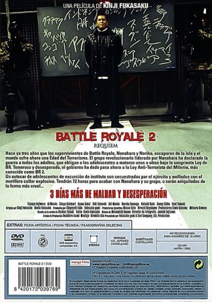 Nanahara ha creado un grupo llamado "Wild seven" (que es considerado terrorista por sus acciones "anti-adultos") y le ha declarado la guerra a todos los adultos de Japón y del mundo. La hija de Kitano se inscribe en la próxima escuela destinada a participar bajo las nuevas reglas del Battle Royale y jura venganza por la pérdida de su padre.