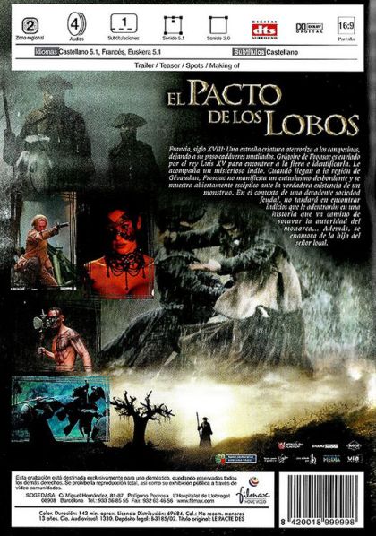 1765. Delegado por el rey Luis XV, el caballero Grégoire de Fronsac, acompañado por su viejo amigo Mani, un indio iroqués de la tribu Mohawk, llegan a Gévaudan para resolver el misterio de la Bestia, que ensangrienta los campos locales desde hace un año. Las primeras investigaciones del caballero no tardan en descubrir elementos inquietantes...