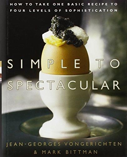 What happens when a four-star chef and a culinary minimalist decide to join forces to create something different? They invent a new style that adapts to every occasion and every level of cooking expertise. Simple to Spectacular introduces a unique concept developed by one of the world's top chefs, Jean-Georges Vongerichten, and Mark Bittman, author of How to Cook Everything and the New York Times's hugely popular column "The Minimalist." Ever since their award-winning collaboration on Jean-Georges: Cooking at Home with a Four-Star Chef, the acclaimed duo has been cooking up a repertoire of new dishes that can be prepared in any of five progressively sophisticated ways. Simple to Spectacular features a total of 250 recipes in 50 groups. Each group begins with a simple, elegant recipe--a few ingredients combined for maximum effect--followed by fully detailed, increasingly elaborate variations. For example, a recipe for Grilled Shrimp with Thyme and Lemon leads to Grilled Shrimp and Zucchini on Rosemary Skewers, Grilled Shrimp with Apple Ketchup, Thai-style Grilled Shrimp on Lemongrass Skewers, and Grilled Shrimp Balls with Cucumber and Yogurt. Every aspect of the meal is covered, from superb soups and salads to unforgettable side dishes, entrees, and desserts. In Simple to Spectacular, everything--from the basics to innovations by a four-star chef--is tailored for a quick Tuesday night dinner or an elegant weekend party. And in the now-classic Vongerichten-Bittman style, all of the recipes can be made in the kitchen of any home cook. With 80 full-color photographs giving a mouthwatering view of the Simple-to-Spectacular transformations, readers and cooks will eagerly explore the possibilities.Jean-Georges Vongerichten (right) won the 1998 James Beard Award for Outstanding Chef and Best New Restaurant. His Manhattan restaurants include Vong, Jo Jo, The Mercer Kitchen, and Jean Georges, which earned a rare four-star rating from the New York Times. In Simple to Spectacular, two titans of the food world have created a truly groundbreaking cookbook. Here are 250 superb recipes arranged in a uniquely useful way: a basic recipe and four increasingly sophisticated variations, with each group (there are 50 groups in all) based on a given technique. This ingenious organization enables cooks of all levels of expertise to understand how a recipe is created and to re-create the brilliantly simple recipes and dazzling variations from one of our best food writers and home cooks teamed with one of America's greatest chefs.