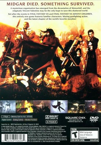 DIRGE of CERBERUS for the PlayStation®2 is the third installment in the COMPILATION OF FINAL FANTASY®VII. Taking place three years after the original PS one game console title, gamers follow Vincent Valentine's journey as he uncovers shocking truths never revealed in Midgar. Vincent is connected to recent attacks, and he may be the only one who can save this shattered world. When the world is engulfed in darkness, his gun will toll a dreadful dirge...