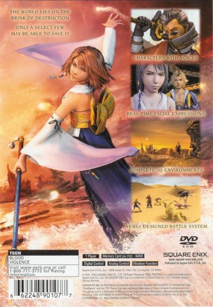 Immerse yourself in a world that has been devastated by a mysterious force known only as "Sin". Human existence teeters on the brink of extinction when Sin willfully destroys cities and lives. Final Fantasy X makes history by being the first Final Fantasy installment to integrate voiceovers into a majority of the story scenes. Along with a special effects system known as the "Facial Motion System," this feature breathes new life into the characters, story, and the Final Fantasy series itself.