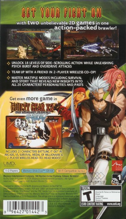 In Guilty Gear Judgment, players will be able to experience the fast paced, adrenaline fused, arcade fighting of Guilty Gear X2 # Reload as well as delve into a new Guilty Gear gameplay experience, 'Boost Mode' which is a 'beat-em-up', side-scrolling, action mode featuring 20 Guilty Gear characters. For the first time players will take their favorite Guilty Gear character and be able to battle, by themselves or with a friend via the PSP's wireless connectivity, through hordes of aggressors and dole out their own personal brand of judgment.