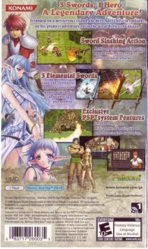 The Ys series is one of the longest running RPG franchises of all time. Ys: The Ark of Napishtim is a new chapter in the adventures of the red-headed hero, Adol Christin. Adol embarks on his greatest adventure yet as he explores hidden islands in the great vortex of Canaan. He battles with three magical swords imbued with elemental powers to uncover the secrets that lie in Canaan's mysterious whirlpools. Now on the PSP portable, gamers-on-the-go can experience the beautiful visuals, distinct storytelling, exciting plot twists and unique characters that set Ys apart from other action RPGs.
