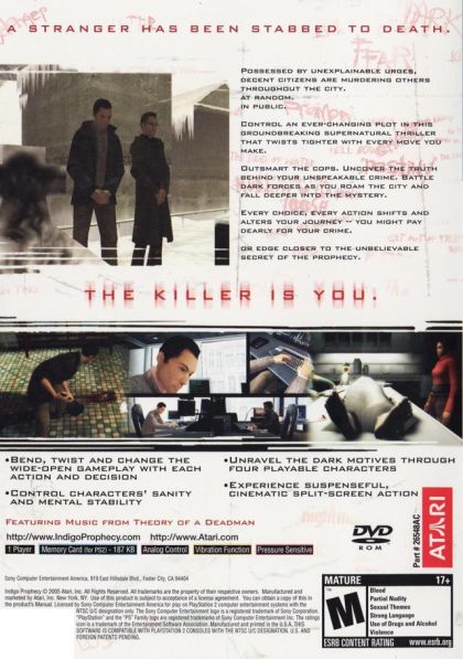 Lucas Kane becomes one of these murderers when he kills a stranger in the men's room of a restaurant. Finding himself in control of Lucas, the player is haunted by strange visions and the desperate need to find out what is happening to him. At the same time he must keep one step ahead of the police, especially Inspector Carla Valenti and her teammate agent Tyler Miles.
