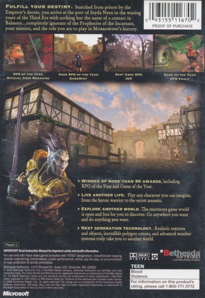 The Elder Scrolls III: Morrowind is an epic, open-ended single-player game where you create and play any kind of character you can imagine. Your actions define your character, and your gameplay changes and evolves in response to your actions. Confront the assassins' guild, and they take out a contract on you. Impress them, and they try to recruit you instead. No two sagas are the same in the world of Morrowind. The end result is the most open-ended RPG possible - one with an infinite number of possible paths through the game.