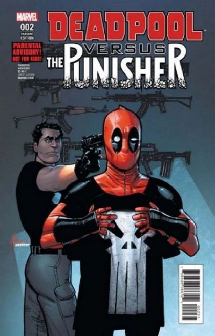 Frank Castle has an unstoppable will - a powerful drive to punish those who do wrong, rooted in the tragic killing of his family. Wade Wilson has an unstoppable mouth - an unthinking knack for annoying everyone around him, rooted in thinking he's funny. Both men, however, are among the deadliest on the planet. When they find themselves in disagreement over the criminal known as The Bank, they're in for one of the most brutal fights of their lives! Can Frank kill Wade over and over without ever dying once himself? Or will Wade bug him until he welcomes death? Parental Advisory