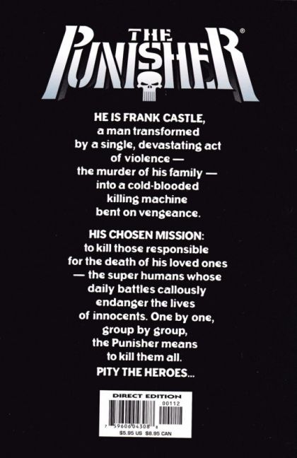 Reprinting Garth Ennis' first shot at writing the Punisher! What happens when Frank Castle's wife and kids are caught in the crossfire of a super-hero battle instead of a gangland slaying? Find out in this alternate-reality tale from 1995, as Castle vows vengeance on a world full of Marvel heroes as the Punisher!