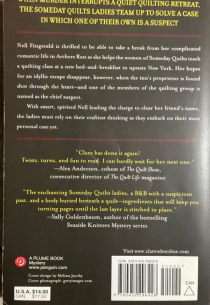Book #3 of the Someday Quilts Mystery series A knotty new Nell Fitzgerald mystery in the series that's beguiling cozy fans and quilters alike. Nell Fitzgerald and the Someday Quilts ladies are asked to lead a quilting workshop at a new bed and breakfast in upstate New York. However, the retreat quickly takes an unexpected dark turn. When a body is found in the woods, and one of their own is the chief suspect, the ladies must rely on their craftiest thinking as they embark on their most personal case yet. With smart, sassy Nell leading the charge to clear her friend's name and find the real murderer, The Double Cross is sure to confirm Clare O'Donohue as a master of the mystery genre.