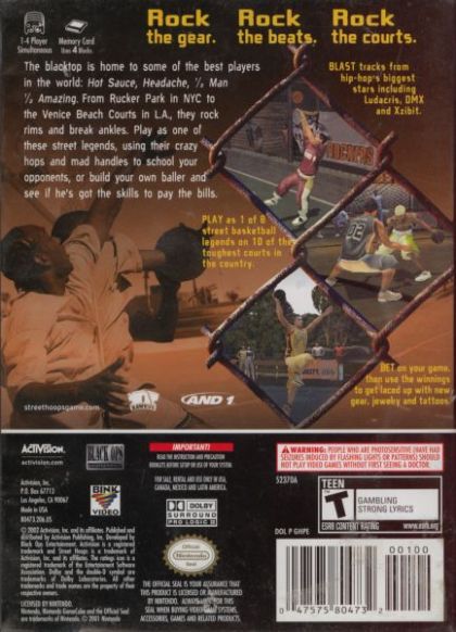 Street Hoops™ is an "in your face" street-style basketball game that captures the aggressive energy and attitude of blacktop competition. The game allows players to compete in a nationwide tournament representing their hometown on the most notorious street courts in the nation. Players will be able to choose from a roster of athletes and performers, including key players that were featured in the And 1 Mix Tapes and Nike's "Freestyle" commercial series.