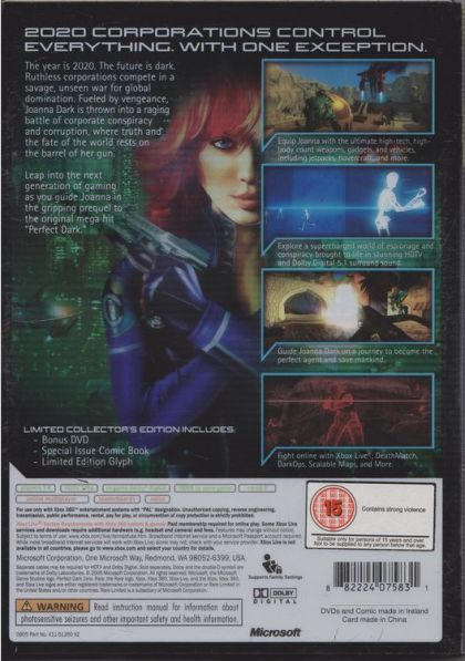 Joanna Dark returns in the Xbox 360-exclusive "Perfect Dark Zero," the prequel to the international award-winning and multimillion-selling first-person shooter "Perfect Dark" from famed game developer Rare Ltd. A secret war has begun between shadowy corporations bent on world domination. Joanna Dark and her father, Jack, are caught up in the fight for the planet's future. A routine bounty hunting mission rips open a global conspiracy that will change Joanna's destiny - forever.