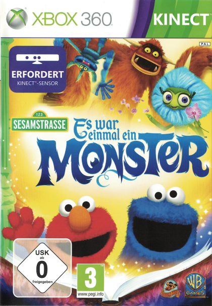 Sesame Street: Once Upon a Monster is an uplifting and funny, family adventure game playable on Kinect for Xbox 360. Players join favorite Sesame Street characters Elmo, Cookie Monster, Oscar, Grover and all new characters as they discover a long lost children's book titled Once Upon a Monster. As they read, they join the action to become part of a living storybook adventure, helping new monster friends with their problems by exploring the book chapter by chapter, page by page. It features active co-op gameplay that is specially designed for sibling and/or parent-child co-play; and teaches social, emotional, and other important life lessons through its colorful and whimsical gameplay.